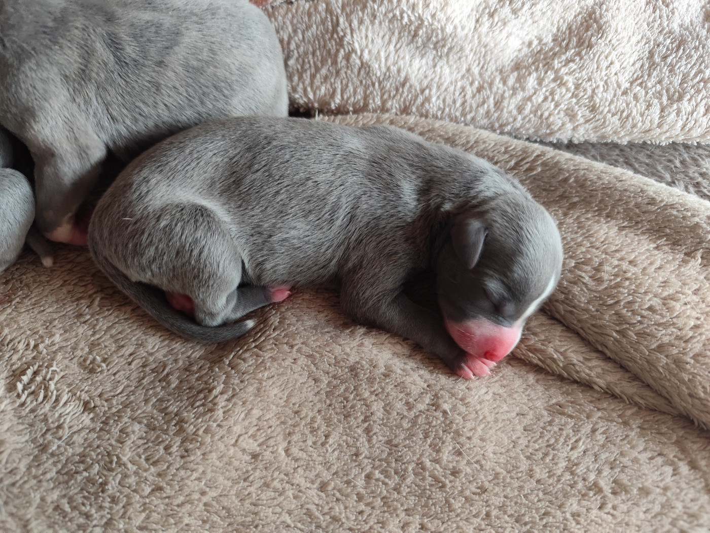 Mâle entièrement bleu Né le 01.02.2026 à 08h10m Poids de naissance 305g